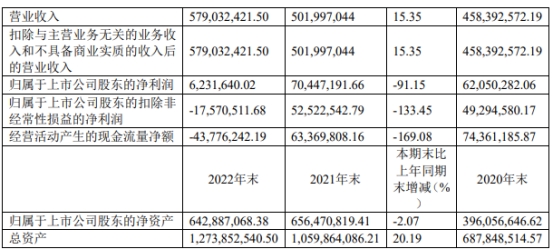 4月18日讯元琛科技(688659.SH)于近日发布2022年年度报告,公司2022年实现营业收入5.79亿元,同比增长15.35%;归属于上市公司股东的净利润为623.16万元,同比下降91.15%;归属于上市公司股东的扣除非经常性损益的净利润-1757.05万元,同比下降133.45%;经营活动产生的现金流量净额为-4377.62万元,上年同期为6336.98万元。