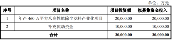 元琛科技最终募集资金较原计划少9083.30万元。公司2021年3月26日发布的招股书显示,公司拟募集资金30,000.00万元,用于年产460万平方米高性能除尘滤料产业化项目、补充流动资金。