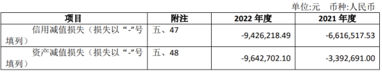 2022年,元琛科技资产减值损失为-964.27万元,上年同期为-339.27万元;信用减值损失为942.62万元,上年同期为-661.65万元。
