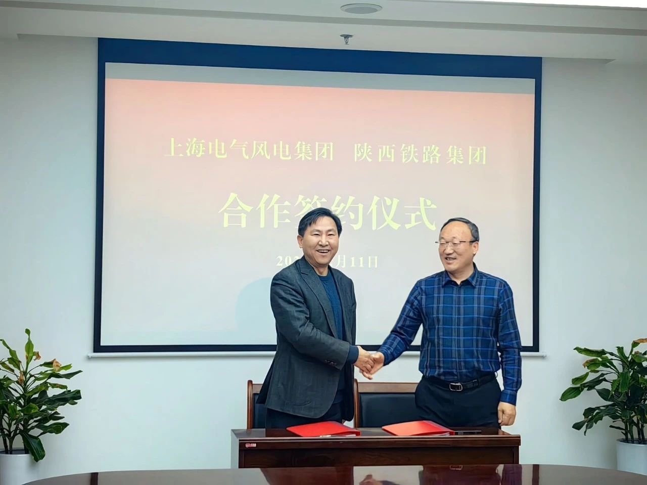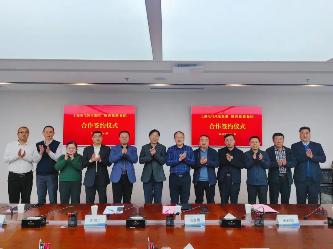 近日,上海电气风电集团股份有限公司(以下简称“电气风电”)党委书记、董事长乔银平一行拜访陕西铁路集团(以下简称“陕铁集团”)党委负责人、执行董事刘永社。双方围绕新能源领域合作、交通和工业装备领域合作、科研创新领域合作及共同拓展海外市场等议题进行深入交流,达成多项共识,并正式签订战略合作协议。