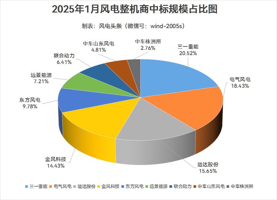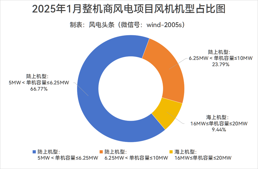 根据风电头条(微信号:wind-2005s)风电项目数据库统计显示,2025年1月份风电中标项目累计6238.15MW(约6.24GW),共有9家整机商中标。
