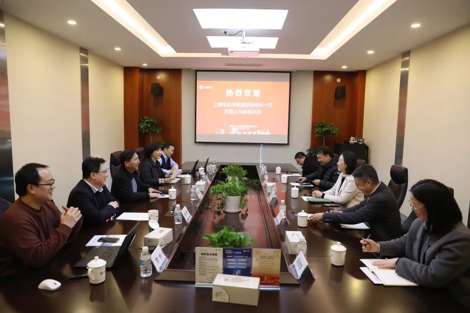 上海电机学院机械学院院长刘军,电气风电党委副书记、纪委书记、工会主席王红春,总工程师、总裁助理、工研院院长蒋勇,以及双方相关业务负责人参与了本次会谈。