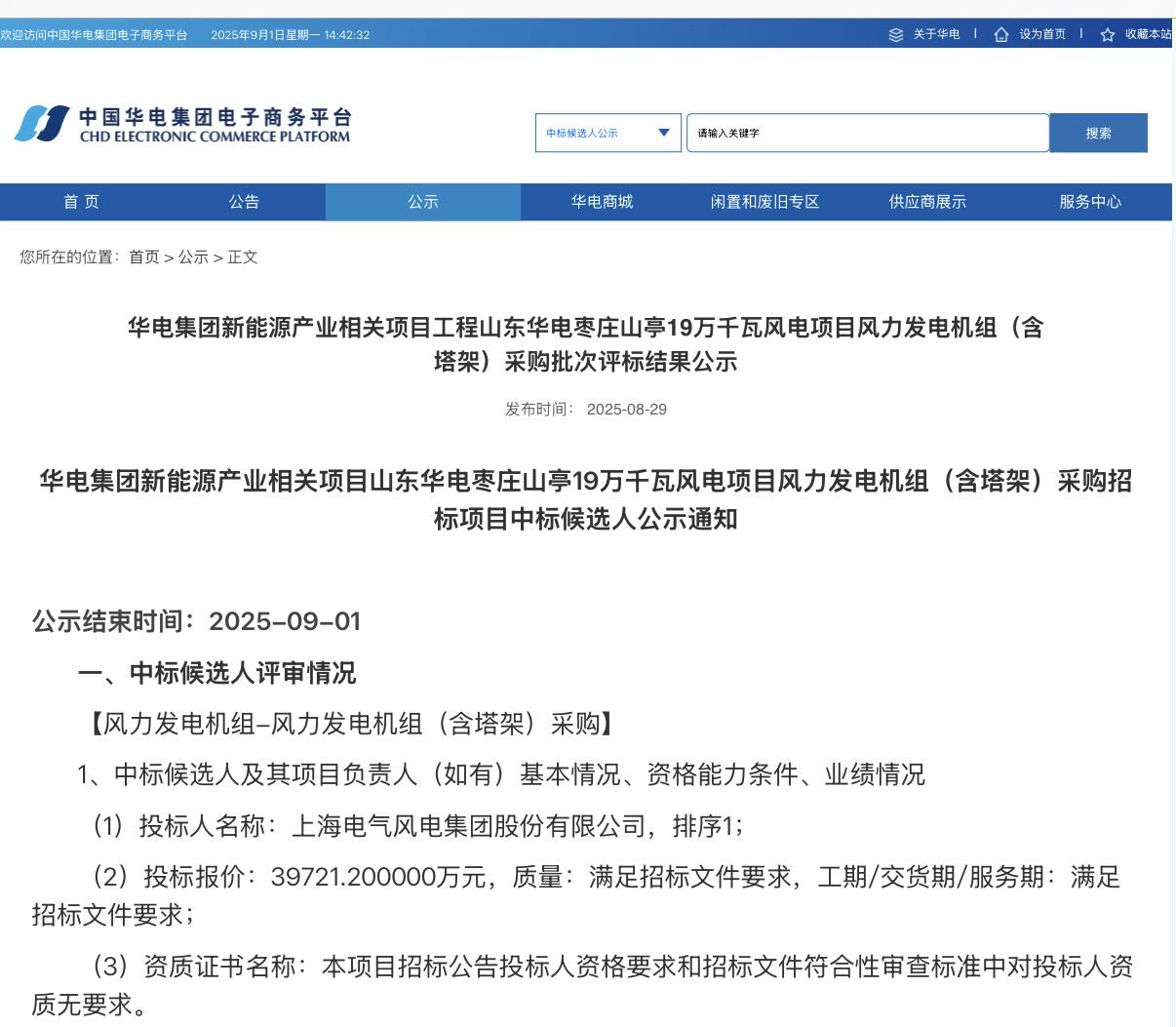 近日,山东华电枣庄山亭19万千瓦风电项目及宁夏华电海原“以大代小”增容更新25万千瓦风电项目公开招标结果公告,显示电气风电成功中标,将为其提供陆上卓越平台机组,双方在风电领域的合作得以持续拓展与加深。