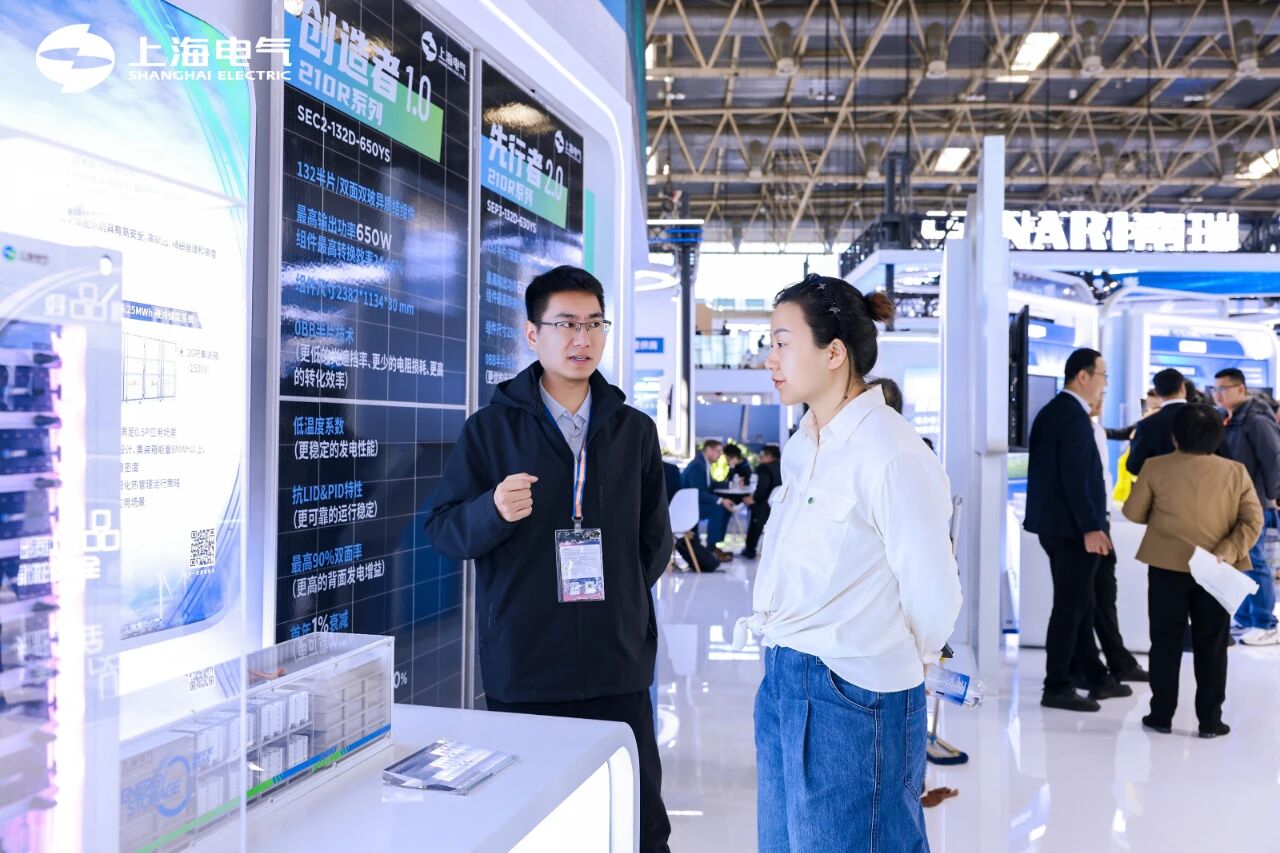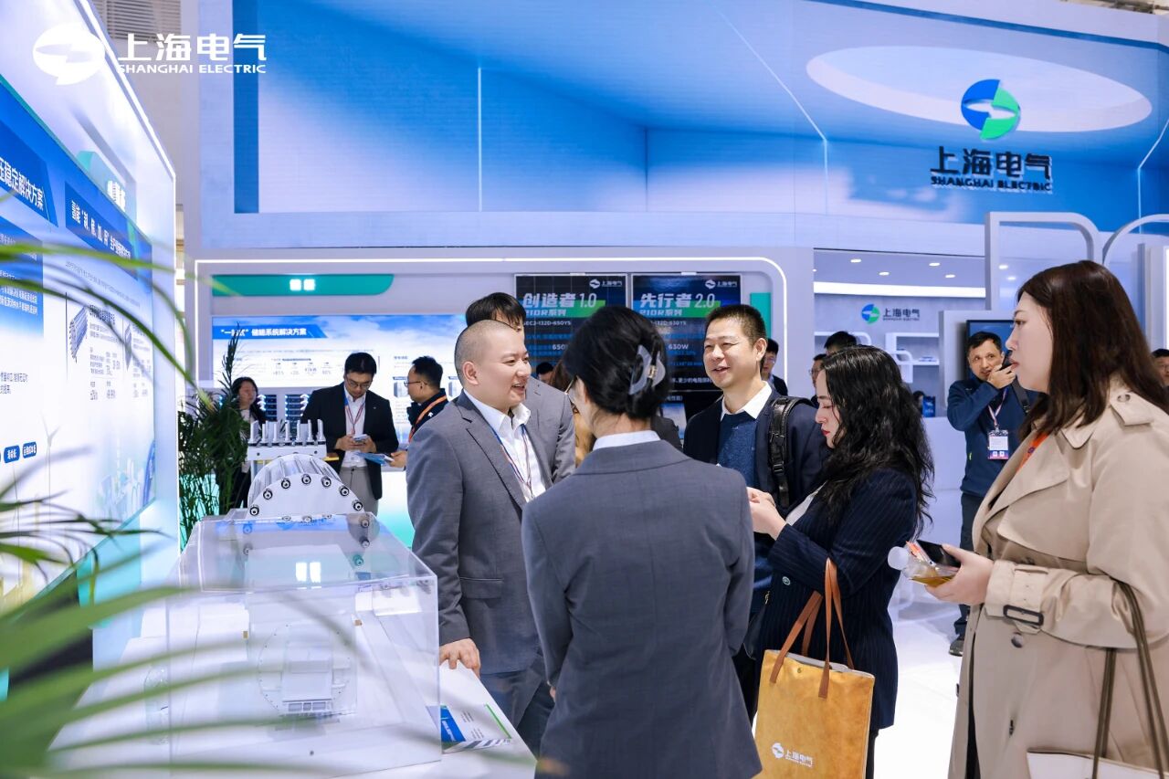 上海电气已构建覆盖“风、光、储、氢、网、荷”的全产业链布局。此次展台上,展出了风电、光伏、储能(液流、锂电)、氢能、调相机、电机、工业防腐等多个领域的产品和解决方案。