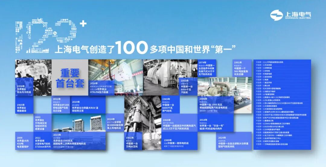 作为能源装备“国家队”,上海电气持续服务国家战略,始终与国家发展同频共振。在123年的发展历程中,创造100多项中国和世界第一。