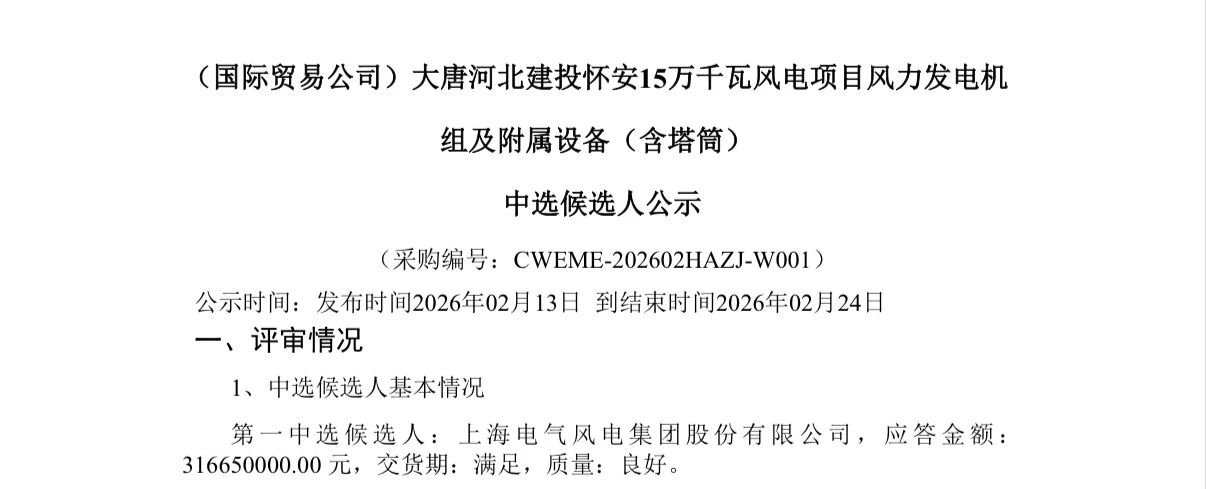 来源 :上海电气风电集团2026-02-24