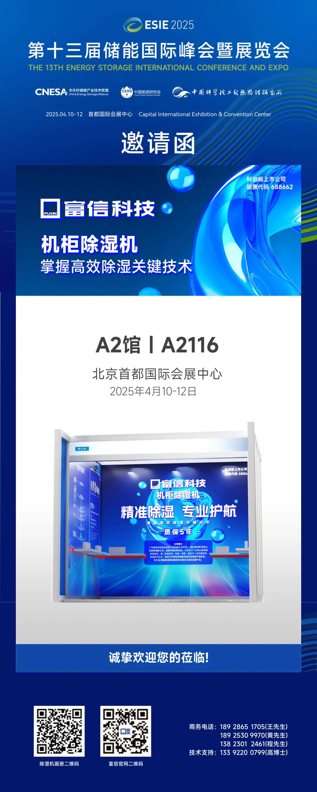 由中关村储能产业技术联盟等主办的第十三届储能国际峰会暨展览会(ESIE 2025),4月10日至12日在北京首都国际会展中心开幕,富信科技诚邀您莅临!