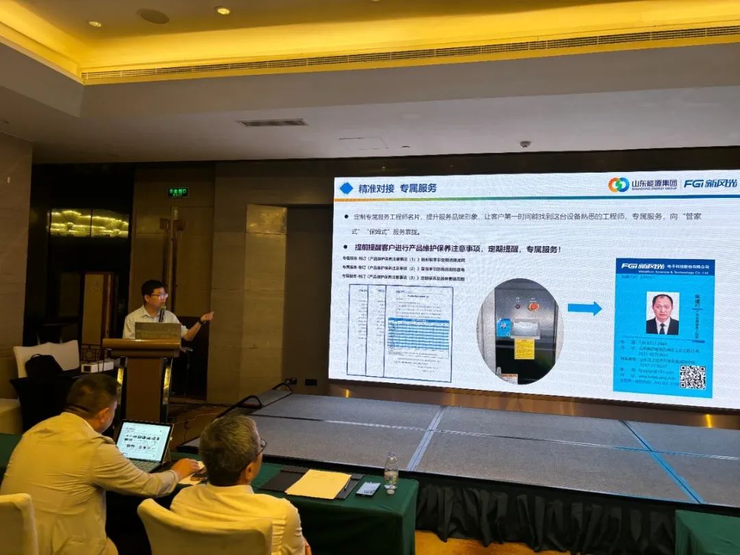 技术支持部高强在现场介绍了新风光服务体系,新风光在全国设立了5大服务中心、21个办事处,做到2小时响应,24小时到达现场,服务半径小于200公里,形成了独特的“售前-售中-售后”全生命周期产品服务,在售前为客户免费诊断用电情况,提供节电技术支持和用电管理咨询;在售中为客户量身定制方案,并不断完善改进直至满足客户需求;在售后进行产品质量寻访和跟踪,随时解决运行过程中可能出现的问题。