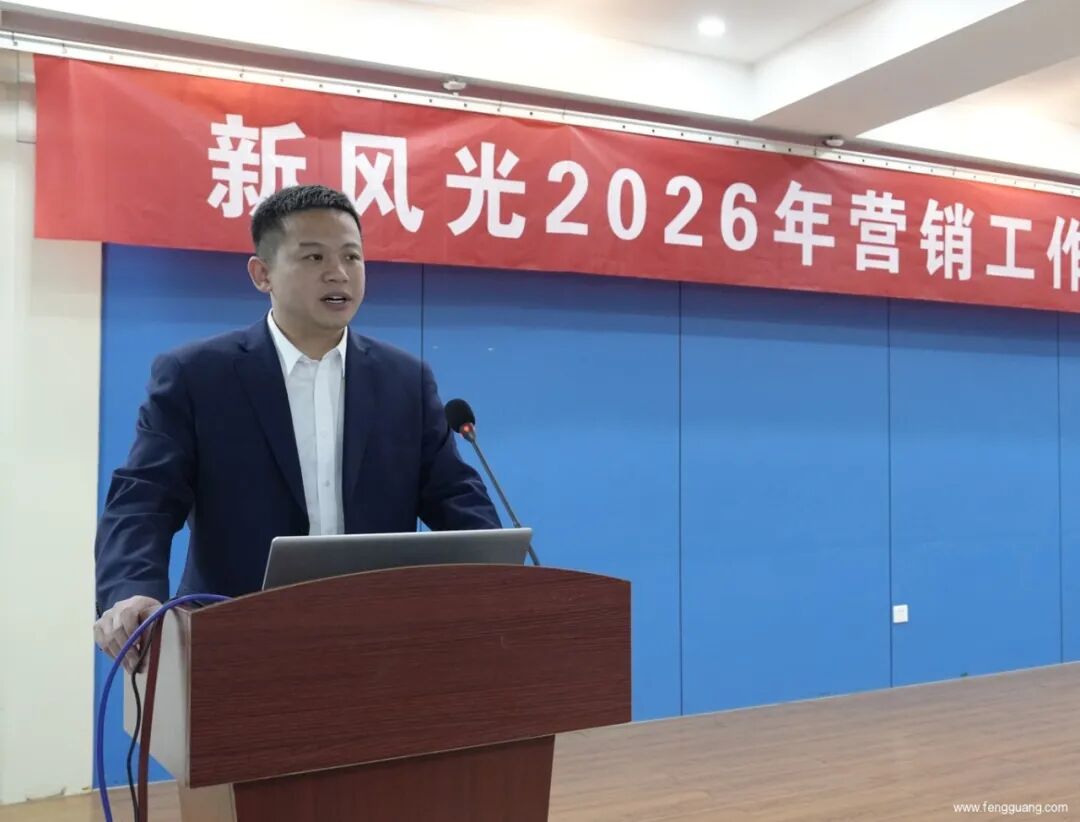 2026年1月6日,新风光公司2026年营销工作会议召开。营销中心全体人员齐聚一堂,总结过往成就,共商2026年营销发展大计。公司党委副书记、总经理胡顺全参加会议并讲话,副总经理、营销总监张长元做《2025年营销工作总结及2026年工作计划》报告。