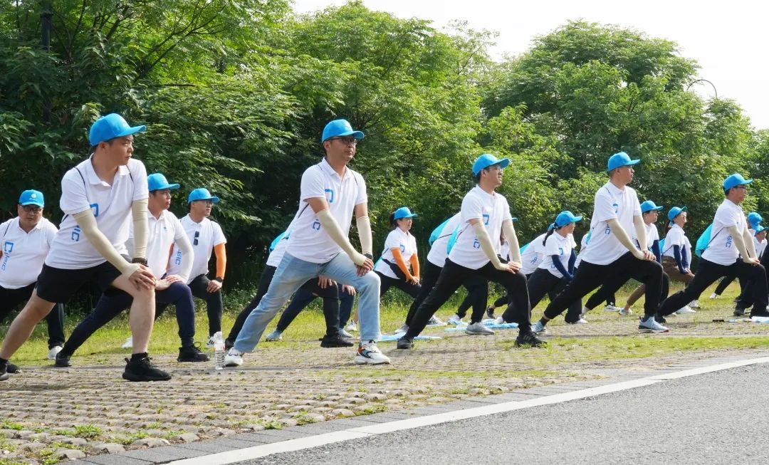 随后,在专业教练的引导下,所有参与人员进行了热身运动,为接下来长距离徒步做好充分准备。