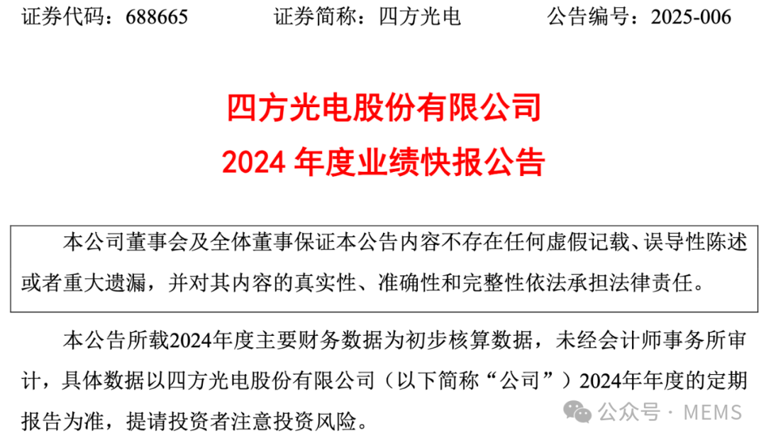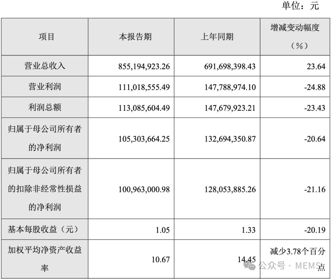 报告期内,四方光电营业收入8.55亿元,同比增长23.64%;归属于母公司所有者的净利润1.05亿元,同比下降20.64%。报告期末,四方光电总资产15.37亿元,比期初增长23.66%;归属于母公司的所有者权益10.21亿元,比期初增长6.16%。