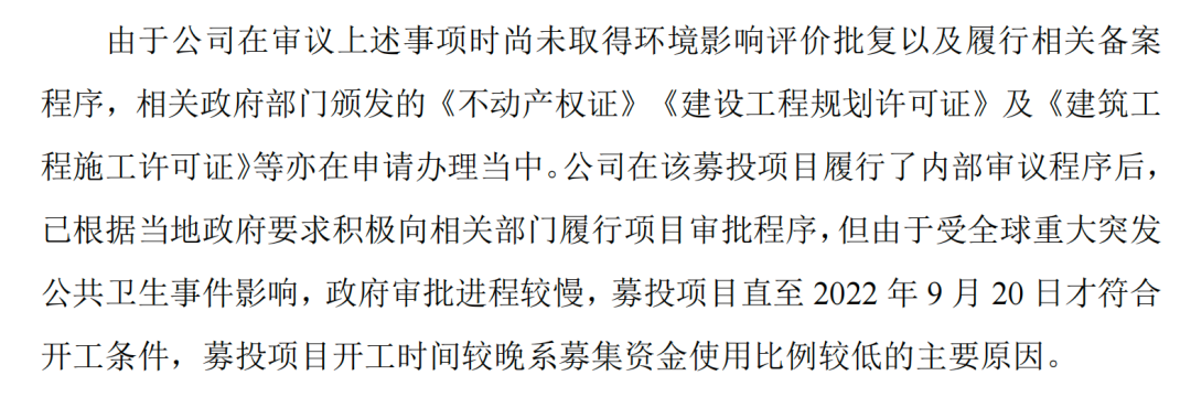 据悉,池州项目计划总投资3.88亿元,其中计划投入募集资金1.20亿元,铺底流动资金9751.58万元,2022年9月20日开工建设,截止2023年3月31日,募集资金已投入2272.78万元,占募集资金计划投入的比例为18.91%,占比较低。交易所也注意到了池州项目目前使用募集资金比例较低的情况,要求其说明原因及合理性。
