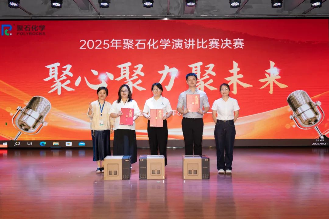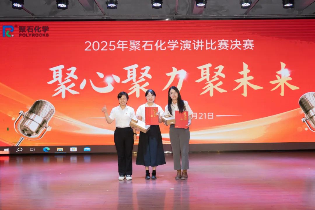 8月21日晚,聚石化学2025年“聚心聚力聚未来”主题演讲比赛决赛在公司多功能厅圆满落幕。本次比赛以党建为引领,将“聚心、聚力、聚未来”的主题与企业发展、员工成长深度融合,通过语言的力量传递爱党爱国、爱岗敬业的赤诚情怀,展现聚石人在党的引领下砥砺前行的精神风貌。