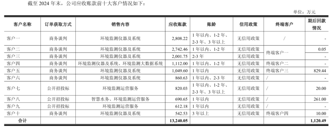 在25年5月1日回复的2024年报问询函中,碧兴物联表示,前十大客户应收账款1.32亿元,报告期后回款金额仅为1120.49万元,回款比8.46%。