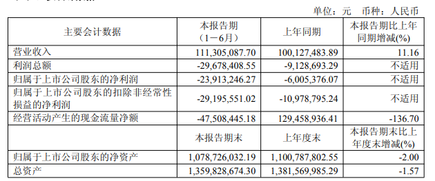 碧兴物联(688671.SH)近期发布2025年半年度报告。2025年上半年,公司实现营业收入1.11亿元,同比增长11.16%;归属于上市公司股东的净利润-2391.32万元,去年同期为-600.54万元;归属于上市公司股东的扣除非经常性损益的净利润-2919.56万元,去年同期为-1097.88万元;经营活动产生的现金流量净额为-4750.84万元。