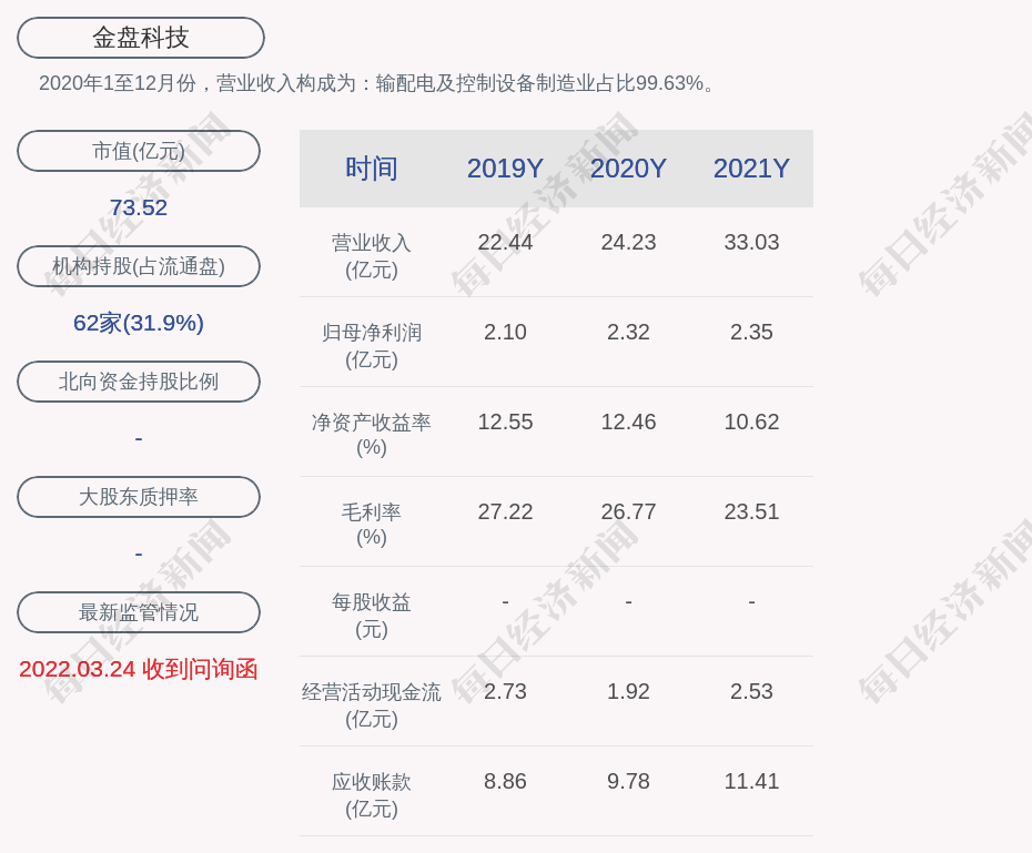 2020年1至12月份,金盘科技的营业收入构成为:输配电及控制设备制造业占比99.63%。