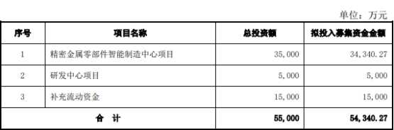 福立旺最终募集资金净额较原计划多1.69亿元。2020年12月17日发布的招股说明书显示,公司拟募集资金5.43亿元,分别用于精密金属零部件智能制造中心项目、研发中心项目、补充流动资金。
