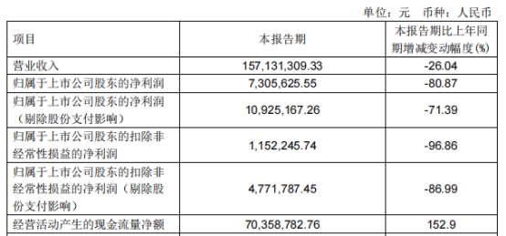 福立旺2023年第一季度报告显示,报告期内,公司实现营业收入1.57亿元,同比下降26.04%;归属于上市公司股东的净利润730.56万元,同比下降80.87%;归属于上市公司股东的扣除非经常性损益的净利润115.22万元,同比下降96.86%;经营活动产生的现金流量净额7035.88万元,同比增长152.9%。