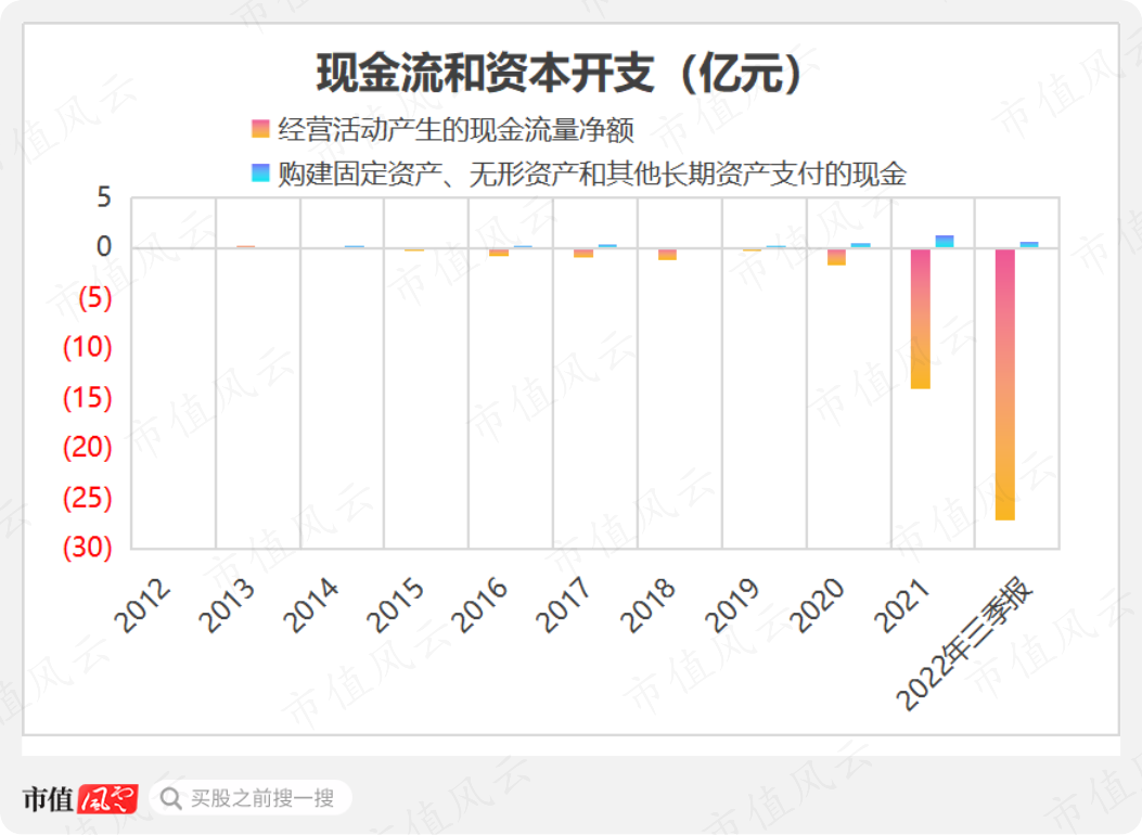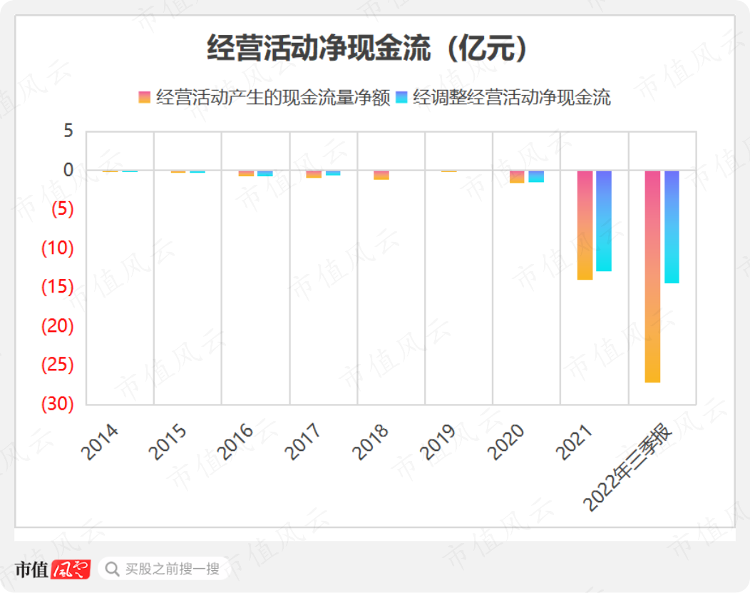 今年前三季度,资本开支力度减小,但经营活动现金流净流出继续大幅提高。