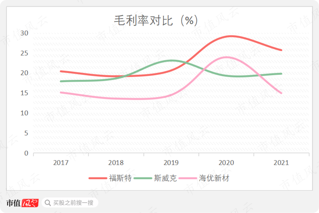 去年,海优新材和福斯特的光伏胶膜毛利率分别为14.9%、25.7%,相差10.8个百分点。