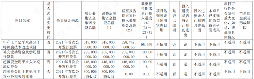 另有2.55亿用于补充流动资金及偿还借款。超募部分中有4.46个亿被用于永久补充流动资金,剩下3.01个亿暂时还没有使用。