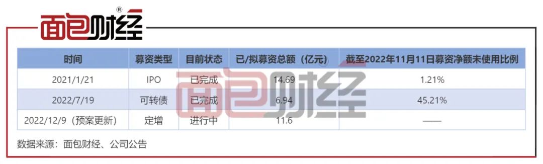 自2021年1月上市至前次募资,海优新材先后于2021年1月和2022年7月完成IPO募资和一次可转债发行,累计融资21.63亿元。