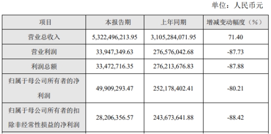 海优新材2月27日晚间发布的2022年度业绩快报公告显示,报告期内,公司实现营业总收入532,249.62万元,同比增长71.40%;实现归属于母公司所有者的净利润4,990.93万元,同比减少80.21%;实现归属于母公司所有者的扣除非经常性损益的净利润2,820.64万元,同比减少88.42%。