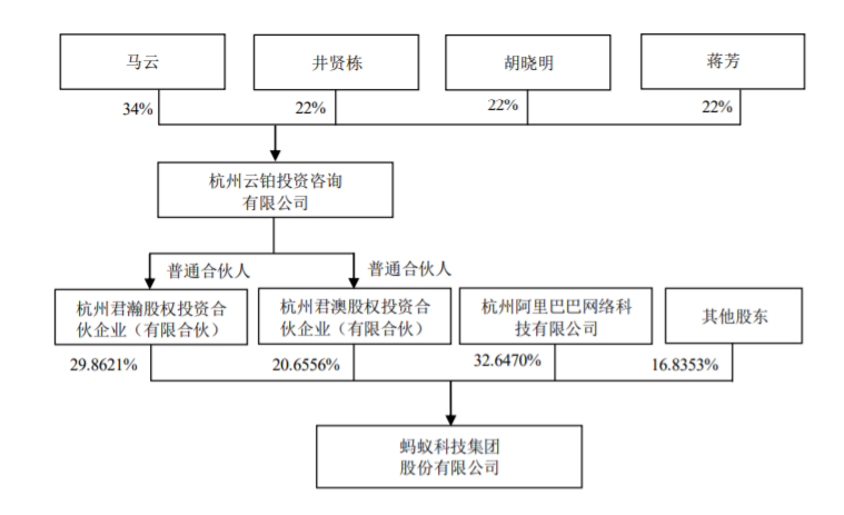 根据蚂蚁此前公布的招股书,由上海云锋新创作为基金管理人的5家有限合伙机构——上海众付、上海麒鸿、上海祺展、上海云锋新呈、上海经颐共持有蚂蚁4.27%股份。而根据企查查数据,截止2021年8月27日,上述五家合计持有约4.01%。