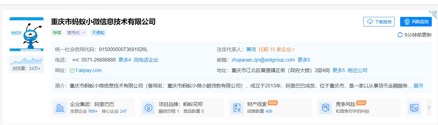 蚂蚁消金此前增资至230亿获批,新增股东系重庆国资委实控企业