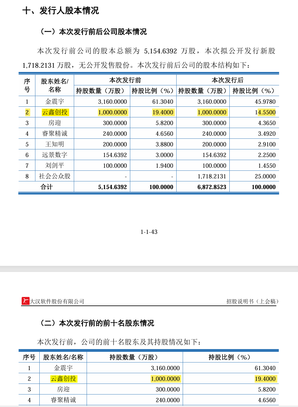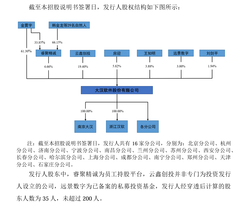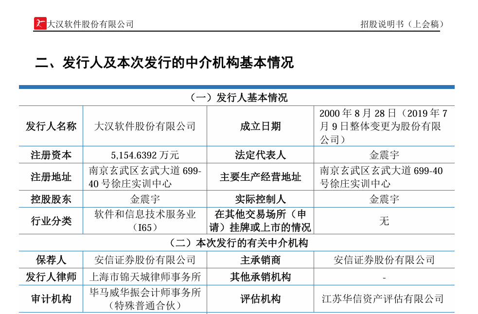 金震宇先生,1969 年 1 月出生,高级工商管理硕士,中国国籍,无境外永久居留权,身份证号码为320111196901******,南京市玄武区第十三届政协委员,2021年度“南京市劳动模范”。1989年 8月至1996年8月,任南京港第四港务公司技术人员;1996年9月至2000年8月期间,曾任南京汉合实业有限公司信息技术部经理;2000年8月,创建了发行人前身大汉有限;2000年8月至2019 年 5月,历任大汉有限执行董事、董事长、总经理;2019年6月至今,任公司董事长、总经理,另兼任睿聚精诚执行事务合伙人。