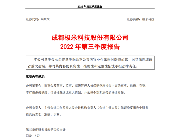 其中,2022年第三季度,极米科技实现营业收入为8.46亿元,同比下降11.59%;净利润为6020.05万元,同比下降44.01%;扣非后的净利润为4298.47万元,同比下降49.16%。