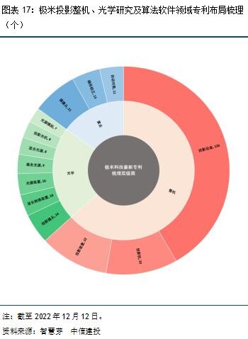 从极米的专利分布可以看出:在巩固原有产品和算法优势的基础上,极米深入研究光学领域。极米研发聚焦智能投影设备,因此专利以投影设备为主,在加大整机研发投入的同时,围绕光学、算法领域深度布局,以加强底层技术创新。