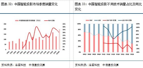 加强底层技术创新,产品创新和技术创新两条腿同时走路,技术上走无人区。当前LED光源亮度提升面临挑战,同时智能投影市场出现结构性变化,2022Q1-Q3国内智能微投销量保持每季度20%+的增长,中信建投测算2022年以来DLP产品销量同比-10%左右,LCD产品销量同比+80%以上。从产品角度和市场角度来看,极米需要往光源、显示等底层技术方向探索,满足消费者更高要求。极米目前内部的战略是产品创新和技术创新两条腿同时走路,形成螺旋式的创新,潜心研发行业内没有的技术,相信这个策略的成果最快会在明年呈现出巨大的革新和换代。