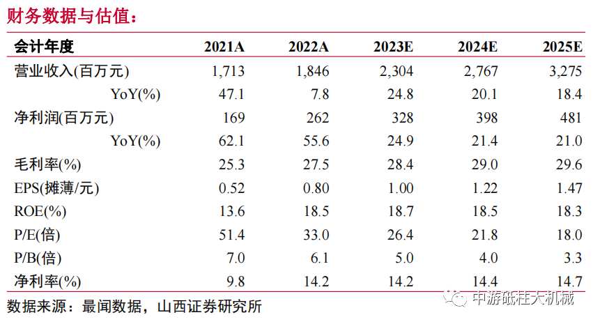 盈利预测、估值分析和投资建议:预计公司2023-2025年归母净利润分别为3.3亿元、4.0亿元、4.8亿元,同比分别增长24.9%、21.4%、21.0%,EPS分别为1.0元、1.2元、1.5元,按照4月17日收盘价26.51元,PE分别为26.4、21.8、18.0倍,维持“买入-A”的投资评级。