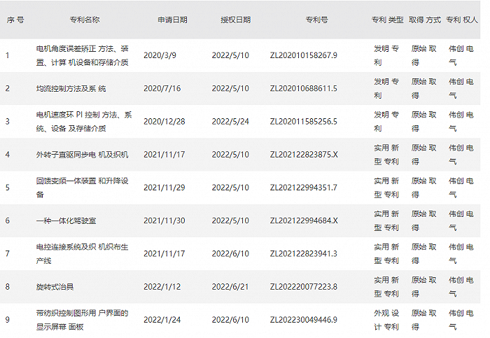 伟创电气7月1日公告,自2022年5月起至今,公司取得国家知识产权局颁发的专利证书9项,其中发明专利3项、实用新型专利5项、外观专利1项;取得国家版权局颁发的计算机软件著作权登记证书2项。