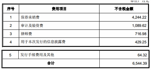伟创电气上市发行费用为6544.39万元,其中保荐机构国泰君安证券股份有限公司获得承销保荐费用4244.22万元,大信会计师事务所(特殊普通合伙)获得审计验资费用1089.62万元,北京市康达律师事务所获得律师费用716.98万元。