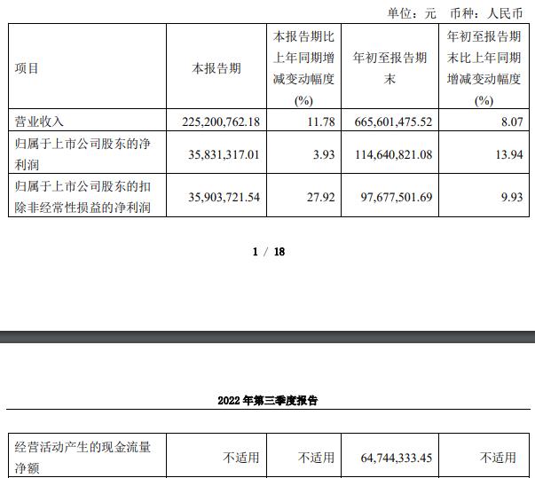 伟创电气2022年第三季度报告显示,2022年第三季度,伟创电气实现营业收入2.25亿元,同比增长11.78%;归属于上市公司股东的净利润3583.13万元,同比增长3.93%;归属于上市公司股东的扣除非经常性损益的净利润3590.37万元,同比增长27.92%。