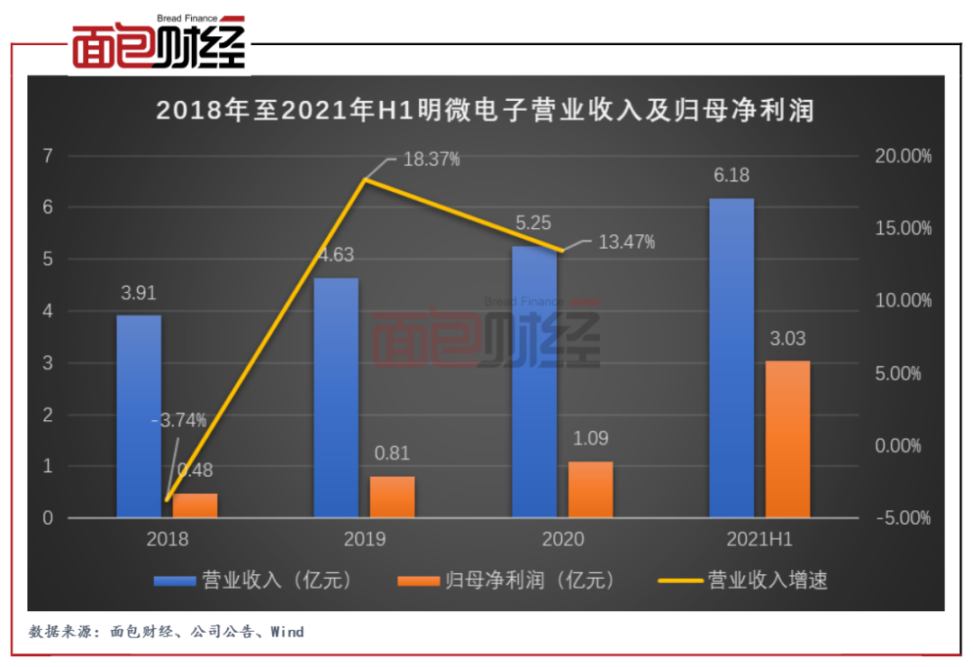 深圳市明微电子股份有限公司(以下简称“明微电子”或“公司”)近日发布2021年半年度报告。2021年上半年,公司实现营业收入6.18亿元,同比增长237.69%;实现归母净利润3.03亿元,同比增长944.79%。