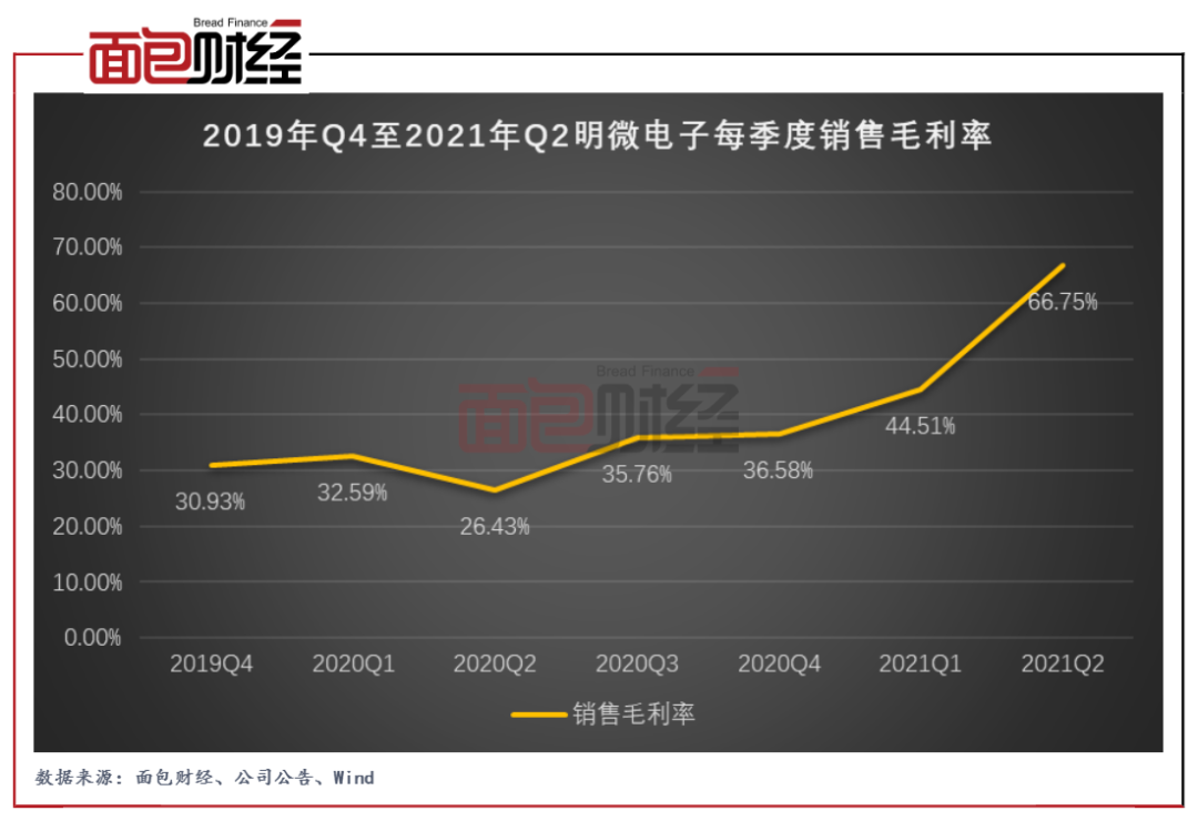 产品结构优化和成本控制是明微电子2021年上半年业绩大幅增长的又一大原因。其中在成本控制方面,公司在Fabless(厂商仅进行芯片的设计、研发、应用和销售,将晶圆制造、封装和测试外包给专业厂商)的经营模式上,从2014年开始自建封装测试厂,并且将2020年首次公开发行股票募集资金的1.38亿元用于集成电路封装项目,向产业链下游延伸。公司自有封测比例的大幅提升,不仅产能和品质得到了保障,同时降低了产品成本,减少了上游原材料涨价带来的不利影响。