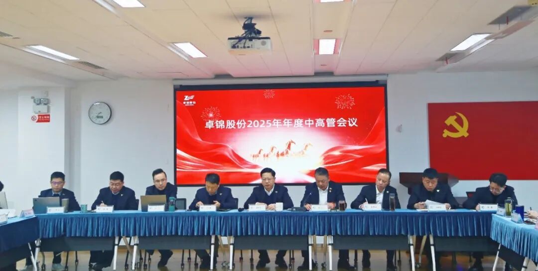 上午8点30分,2025年度中高层会议在公司会议室召开。卓锦股份董事长、总经理卓未龙认真听取了各中心、分(子)公司、事业部负责人2025年度工作完成情况、核心成果及面临挑战的汇报,并作总结报告。