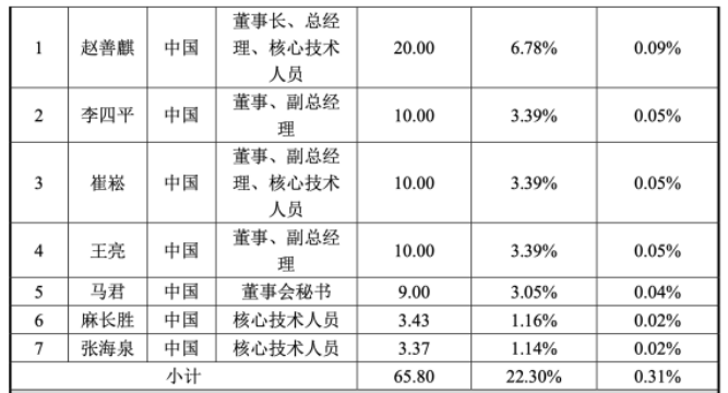 据公司披露的激励对象名单显示,公司董事、高级管理人员、核心技术人员赵善麒、李四平、崔崧等7人所获授的限制性股票占授予限制性股票总数比例为22.3%。