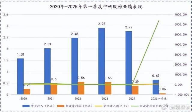 2025年第一季度,中研股份营收突破0.65亿元,较上年同期增长超六成;净利润达0.06亿元,同比增幅更是飙升至64倍。若单看营收和净利润的绝对值,与A股市场上那些动辄数十亿营收的巨头相比,中研股份或许显得有些“不起眼”,甚至难以跻身“第一梯队”。可若论及盈利增长的爆发力,64倍的涨幅足以让市场侧目。这样的惊人蜕变背后,藏着一套值得深挖的商业逻辑。