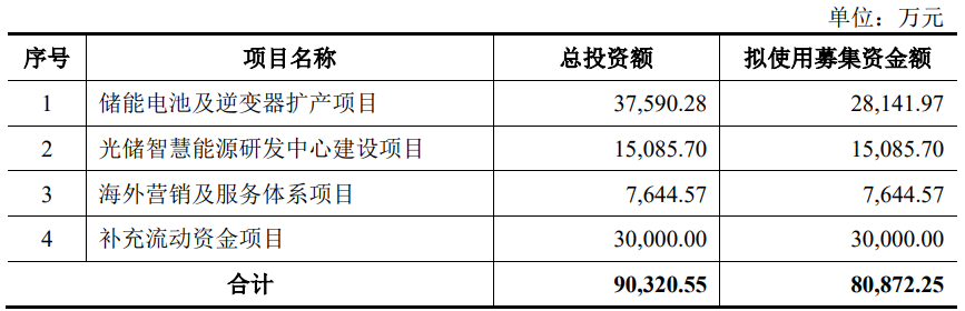艾罗能源本次募集资金总额为222,640.00万元,扣除发行费用后本次发行募集资金净额为198,807.45万元。公司募集资金净额比原计划多117,935.2万元。艾罗能源2023年12月28日披露的招股书显示,公司拟募集资金80,872.25万元,用于储能电池及逆变器扩产项目、光储智慧能源研发中心建设项目、海外营销及服务体系项目、补充流动资金项目。