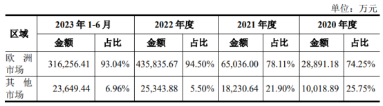 据招股说明书显示,艾罗能源欧洲市场占比逐年提高,尤其是2022年,欧洲市场占比达到了直接来到了94.5%!正是由于2022年,俄乌冲突,天气价格的暴涨,欧洲国家平均批发电价价格受天然气影响在2022年同比增长4倍多,为欧洲户储市场的爆发提供了有力的条件。
