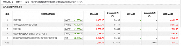 仅从龙虎榜上看,机构投资者参与了此次爆炒。1月10日,2家机构席位合计净买入1.1亿元,一机构席位卖出超1100万元。