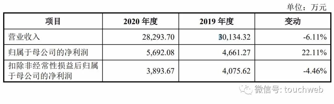 招股书显示,同益中2020年营收为2.83亿元,较上年同期的3亿元下降6%;扣非后净利为3893.67万元,较上年同期的4076万元下降4.46%。