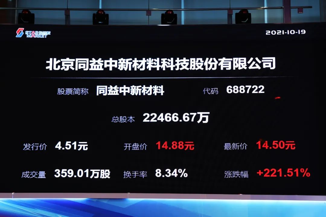 北京同益中新材料科技股份有限公司(证券代码:688722,简称:“同益中”)今日在科创板上市。
