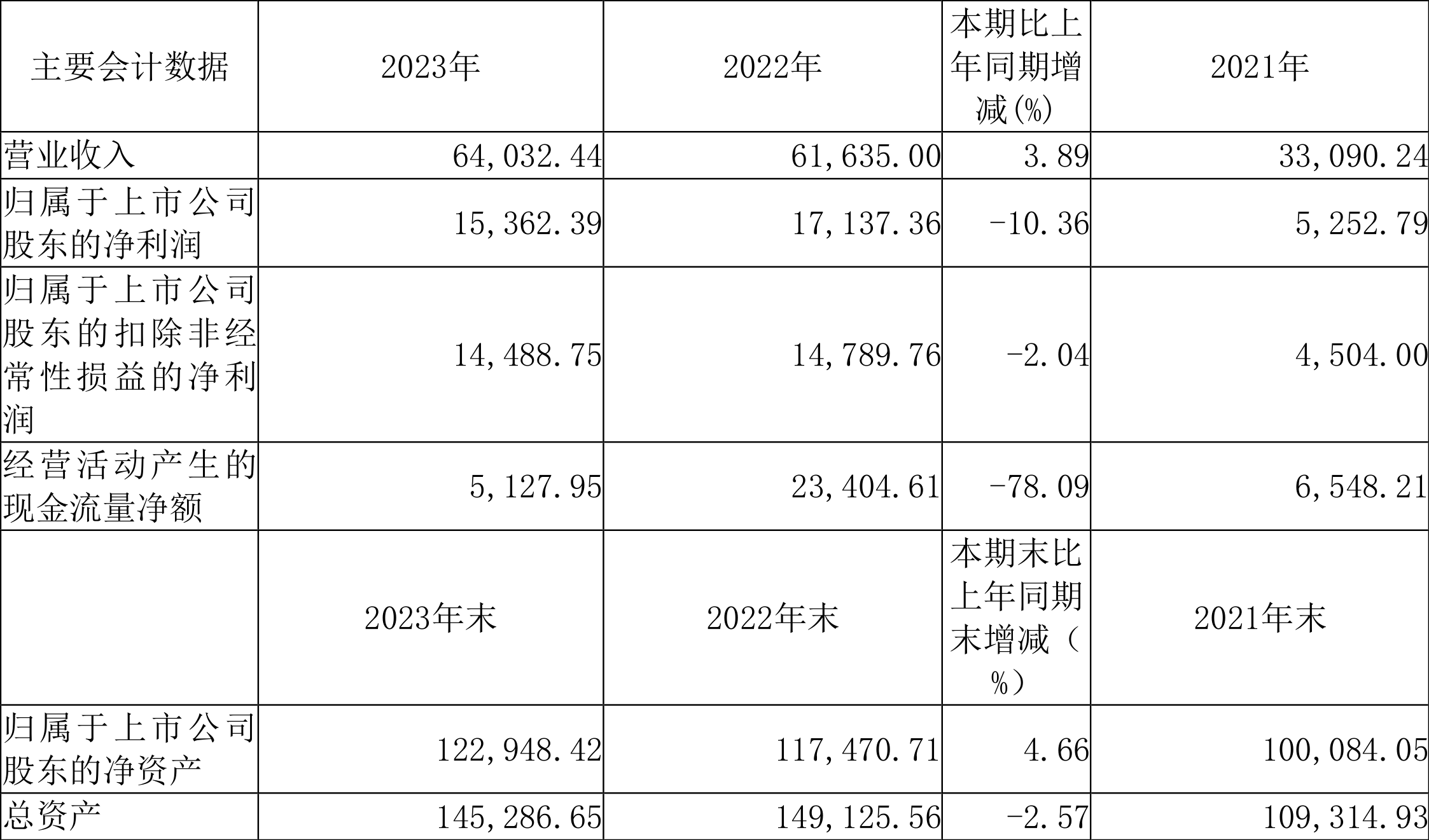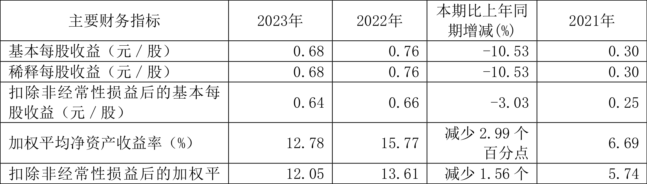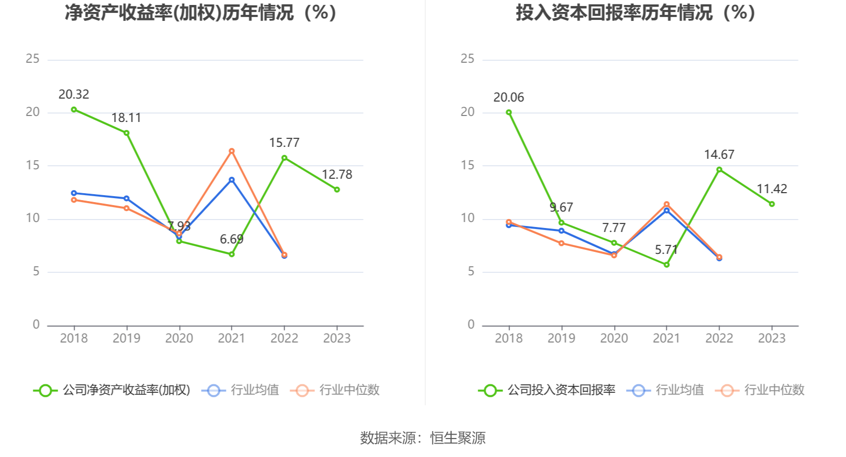 数据显示,2023年公司加权平均净资产收益率为12.78%,较上年同期下降2.99个百分点;公司2023年投入资本回报率为11.42%,较上年同期下降3.25个百分点。