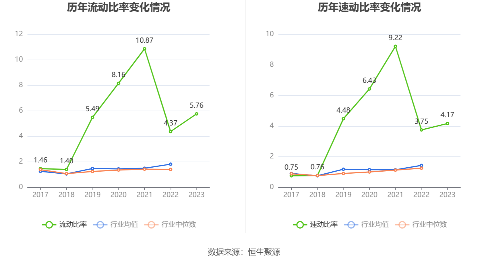 2023年,公司流动比率为5.76,速动比率为4.17。