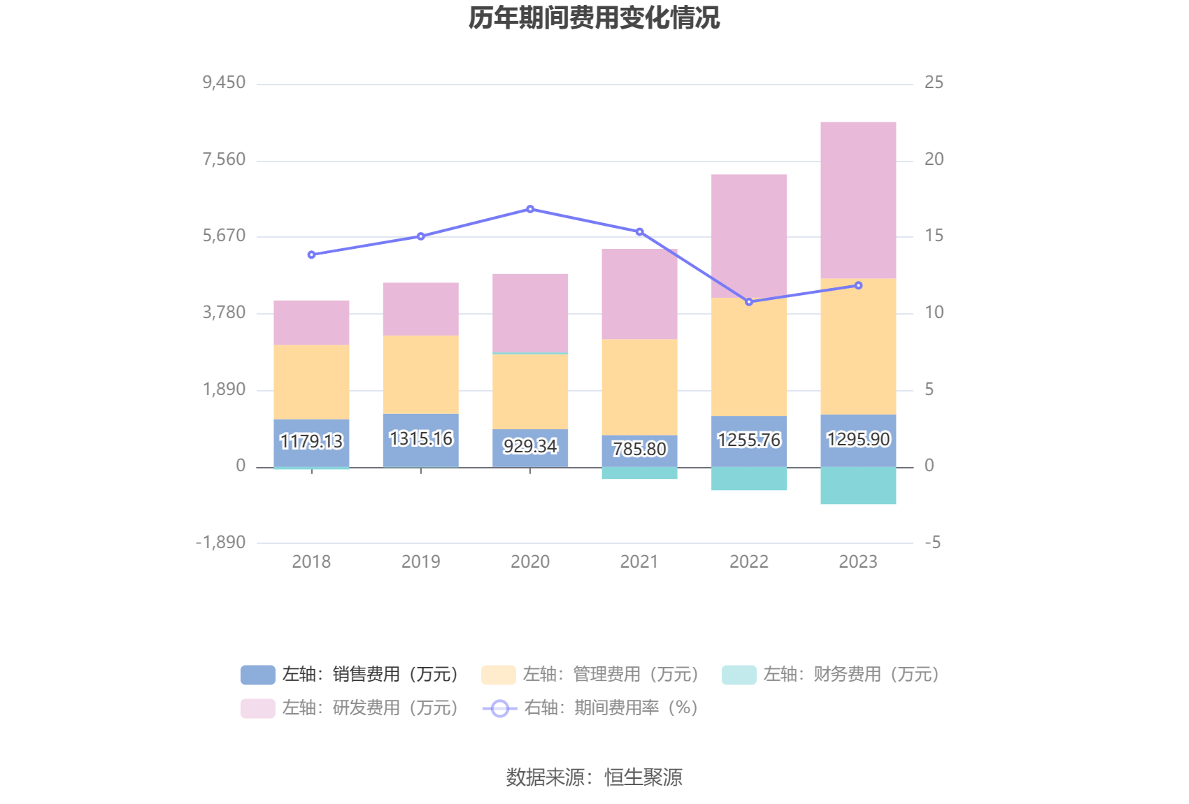 2023年,公司期间费用为7587.79万元,较上年同期增加947.39万元;期间费用率为11.85%,较上年同期上升1.08个百分点。其中,销售费用同比增长3.2%,管理费用同比增长14.88%,研发费用同比增长26.87%,财务费用由去年同期的-576.61万元变为-921.20万元。